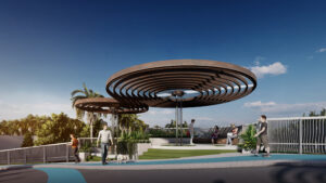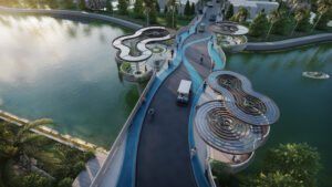 Cầu đi bộ được truyền cảm hứng bởi sự kết hợp hài hòa hình ảnh rừng đước nguyên sinh đặc trưng tại Bình Châu và những làn sóng mềm mại từ bãi biển Hồ Tràm.