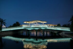 Cầu đi bộ Lagoona nằm trong dự án Lagoona Resort Bình Châu, Bà Rịa Vũng Tàu. Hạng mục được xem như một điểm nhấn đặc biệt của cảnh quan dự án. Với cảnh quan nghỉ dưỡng, phải đáp ứng được yếu tố về thẩm mỹ và cả tính hình ảnh cao. Lấy cảm hứng từ dòng chảy của nước, tạo nên một điểm nhấn bằng ánh sáng và đường nét mềm mại, tinh tế.